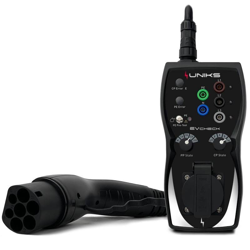 1 pièce Adaptateur pour le contrôle de la borne de recharge du véhicule électrique (code EVCHECK) : UNIKS EV CHECK simule la présence d'un véhicule électrique connecté à la borne de recharge du véhicule électrique, ce qui permet de vérifier son fonctionnement et sa sécurité électrique. Seul Uniks EV CHECK permet de tester chaque point de charge.