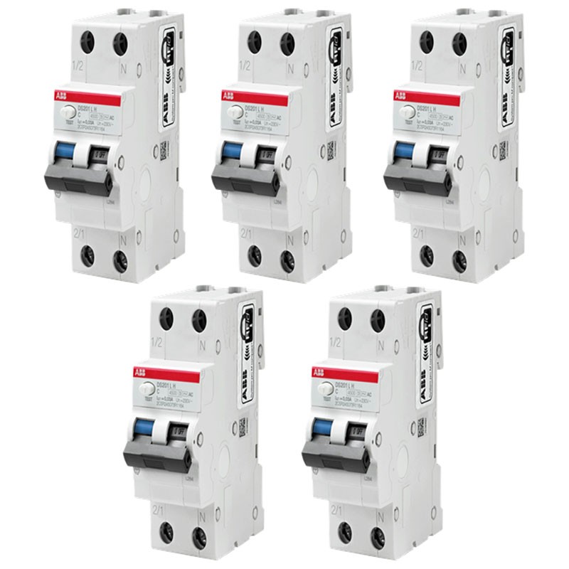 Kit de 5 pièces des interrupteurs différentiels Abb, série DS201LH avec les caractéristiques suivantes
