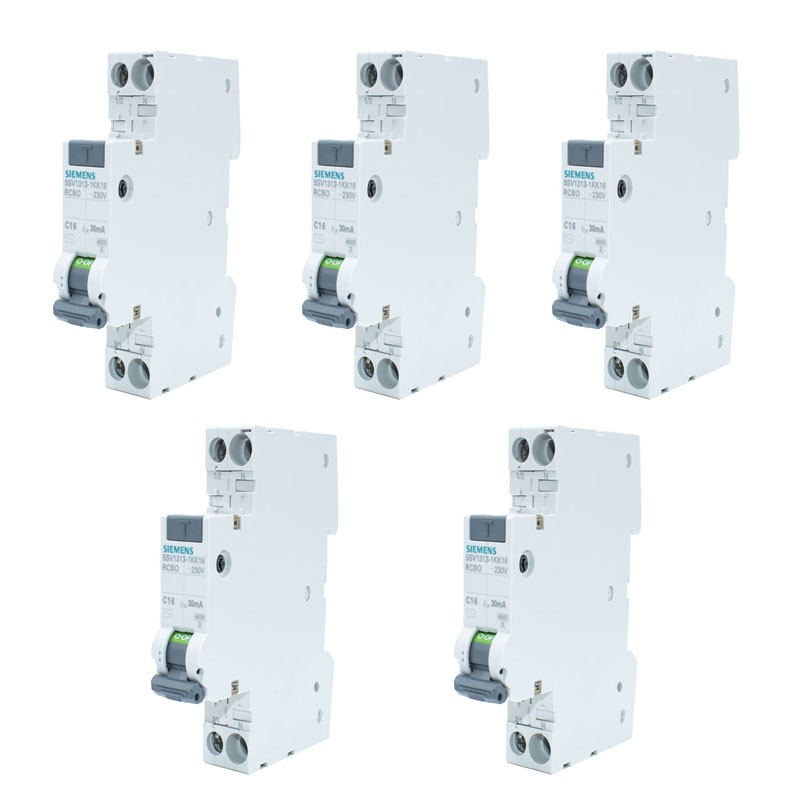 Jeu de 5 d'interrupteurs magnétothermiques différentiels compacts de Siemens, avec les caractéristiques suivantes