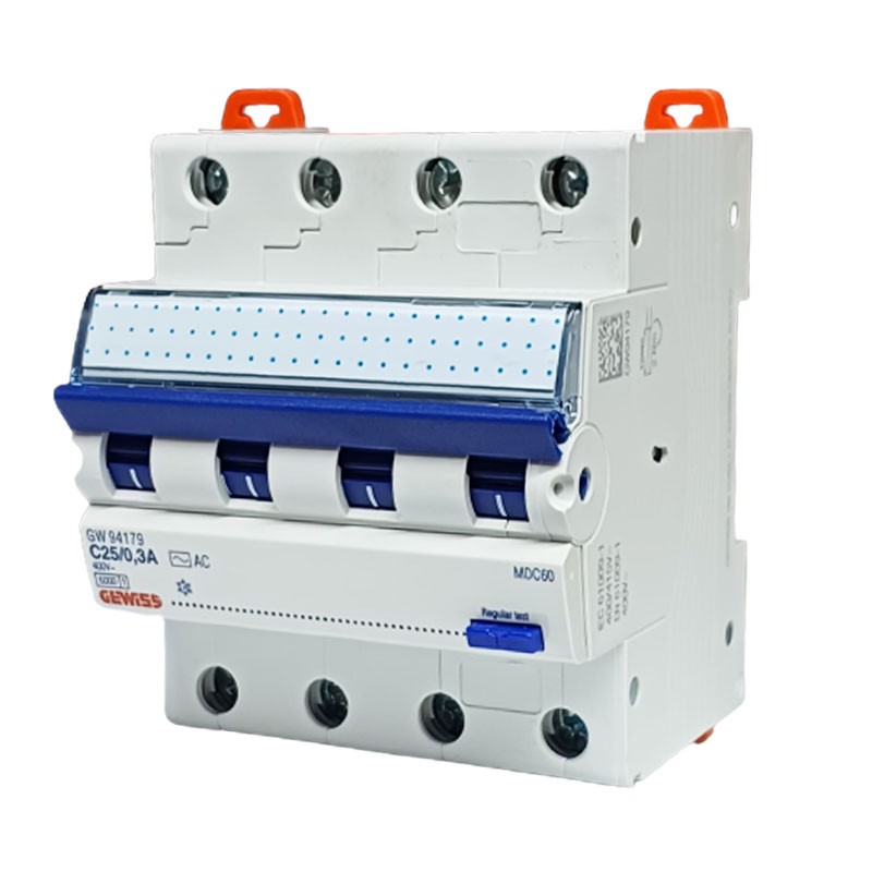 Disjoncteur différentiel Gewiss 25A 4P 300MA AC 6KA 4 Modules GW94179
