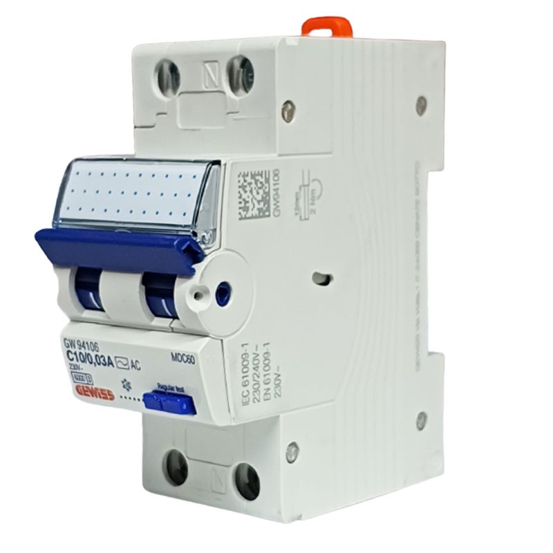 Disjoncteur différentiel Gewiss 10A 1P+N 30MA AC 6KA 2 Modules GW94106