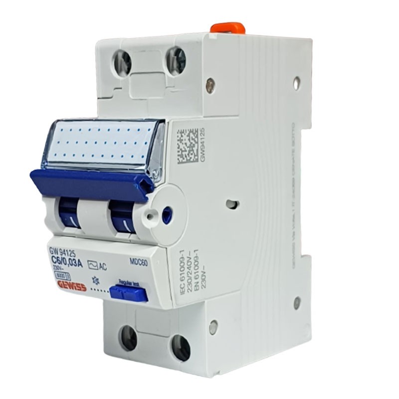 Disjoncteur différentiel Gewiss 6A 2P 30MA AC 6KA 2 modules GW94125