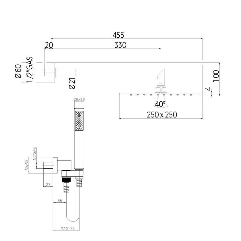 Kit de douche Bossini composé d'un pommeau Bossini Tetis et d'une douchette à main Bossibi Cube avec flexible, avec les caractéristiques suivantes
