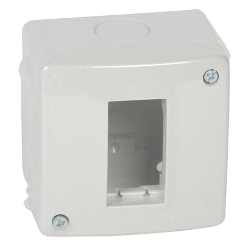 Coffret en saillie Legrand Vela, 1 place (module). Degré de protection IP40.