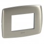 Plaque ronde Legrand Vela 3 places (modules), couleur aluminium satiné. A appliquer sur le support 072843.