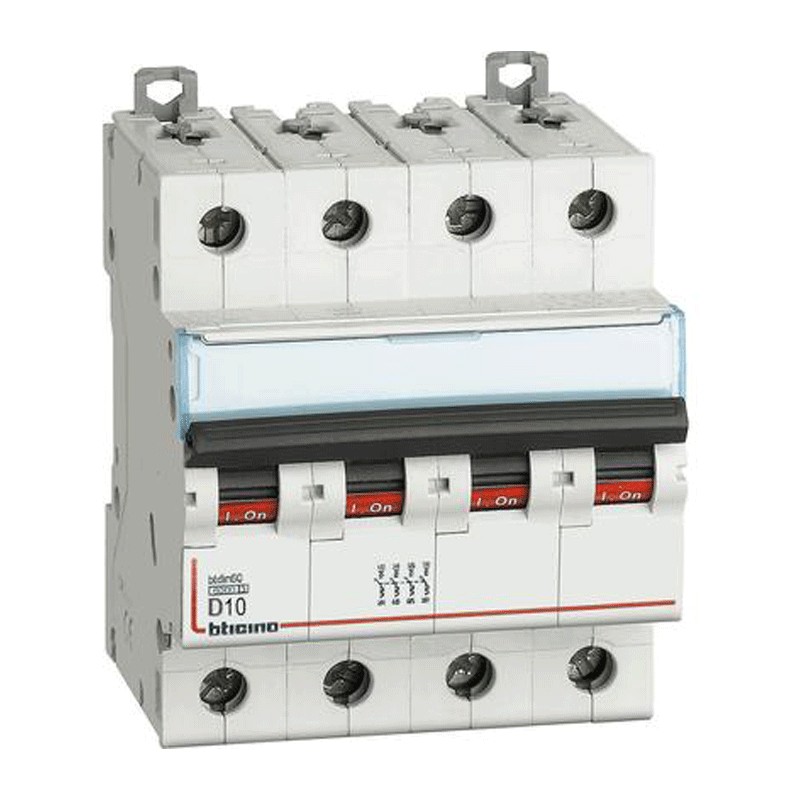 Disjoncteur thermo-magnétique Bticino 10A 4 Pôles 6KA D Bend 4 Modules FN84D10