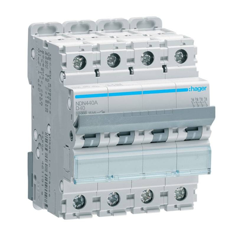 Disjoncteur automatique Hager 4P 40A 10KA Courbe D 4M NDN440A