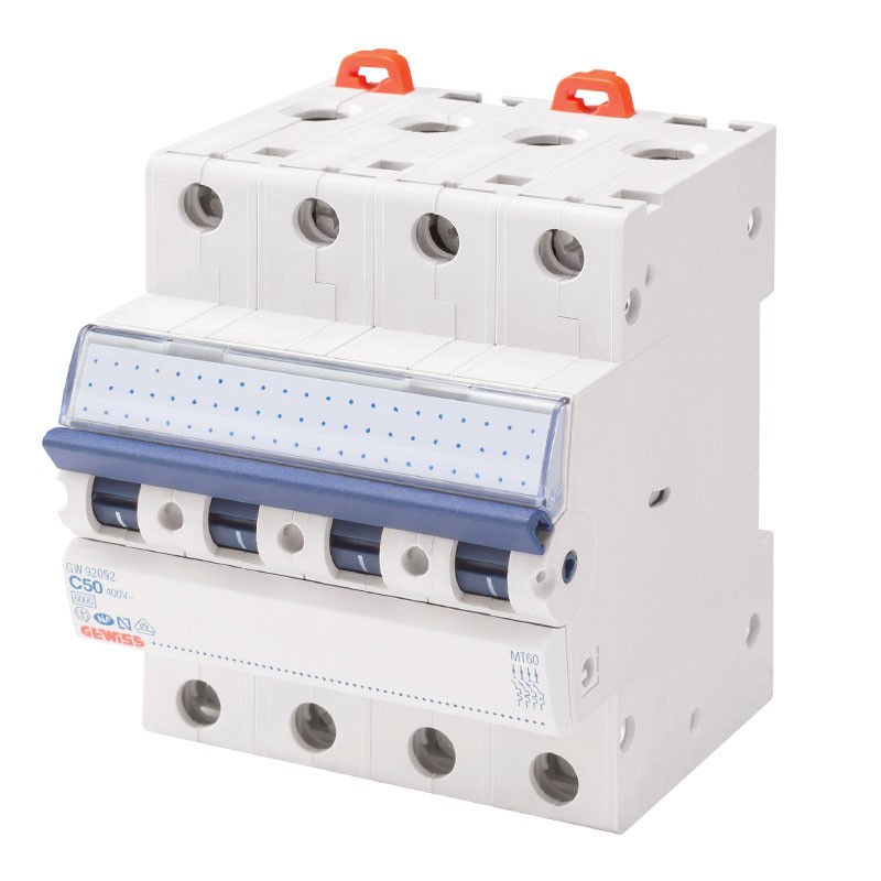 Disjoncteur magnétothermique Gewiss 50A 4P 6KA C 4 Modules avec les caractéristiques suivantes :