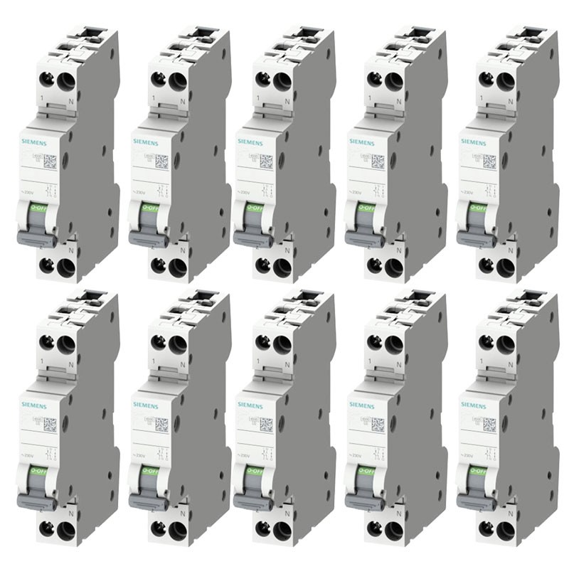 Kit Interrupteurs magnétothermiques Siemens 10A 1P+N 4.5KA courbe C 1 Module 5SL30107