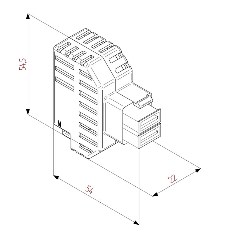 Chargeur/alimentation USB encastré Fanton avec les caractéristiques suivantes :