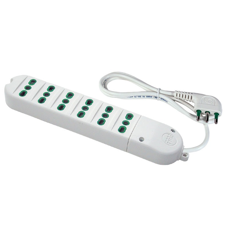 Prise de courant multiple Fanton avec 6 prises bivalentes et câble blanc 41040