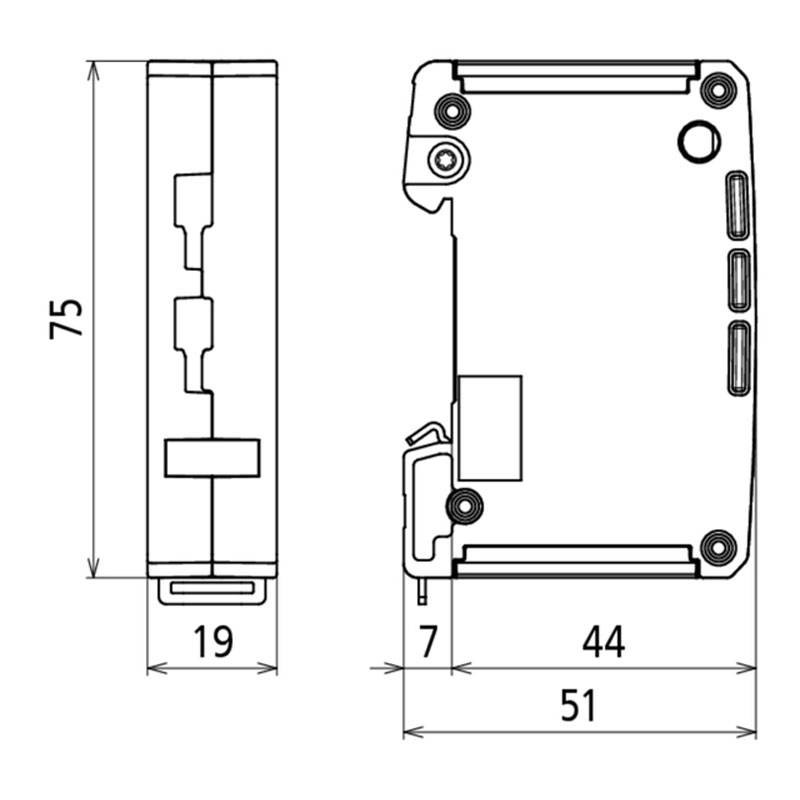 - Montage sur rail profilé de 35 mm selon EN 60715