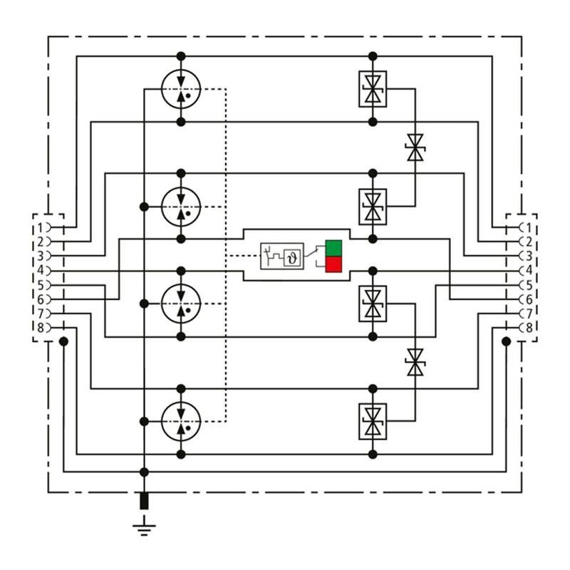 Protection des applications de câblage structuré selon la classe EA jusqu'à 500 Mhz, par exemple les chemins d'accès pour Ethernet, les distributeurs de données, les systèmes numériques de vidéosurveillance, l'alimentation par Ethernet (conforme à la norme IEEE 802.3 jusqu'à 4PPoE) et généralement les interfaces basées sur Ethernet.