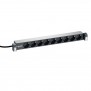 Le panneau d'alimentation 19" est équipé de 16 A/250 V avec 8 prises Schuko plus un interrupteur d'éclairage protégé selon la norme DIN 49440.