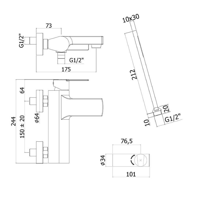 Mitigeur extérieur de baignoire Paffoni Tango avec support mural articulé chromé avec les caractéristiques suivantes :