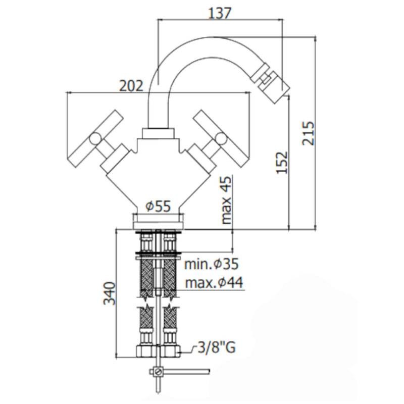 Mitigeur de bidet Paffoni Quattro avec bec orientable sans chasse chromé avec les caractéristiques suivantes :