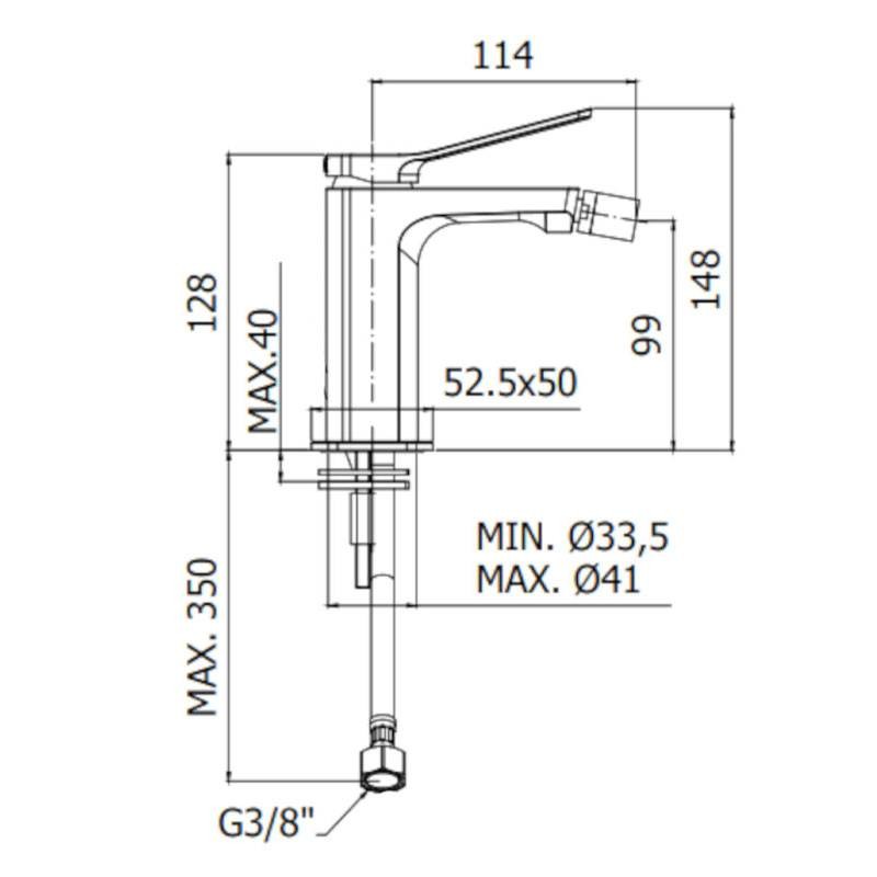 Mitigeur de bidet Paffoni Tilt sans évacuation chromé avec les caractéristiques suivantes :