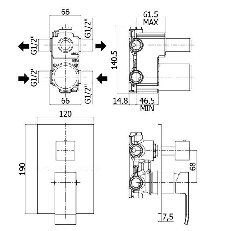 Mitigeur encastré pour douche Paffoni Level 3 sorties chromé avec les caractéristiques suivantes :