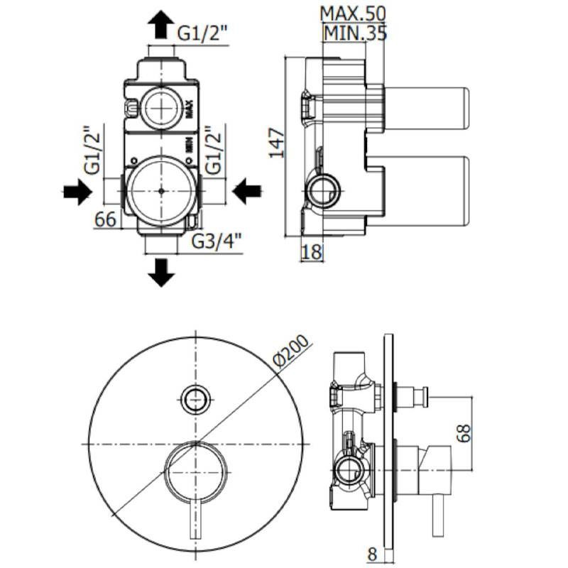 - Raccordements : 1/2 - 3/4