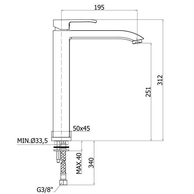 Mitigeur de lavabo prolongé sans vidange Paffoni Level chromé avec les caractéristiques suivantes :