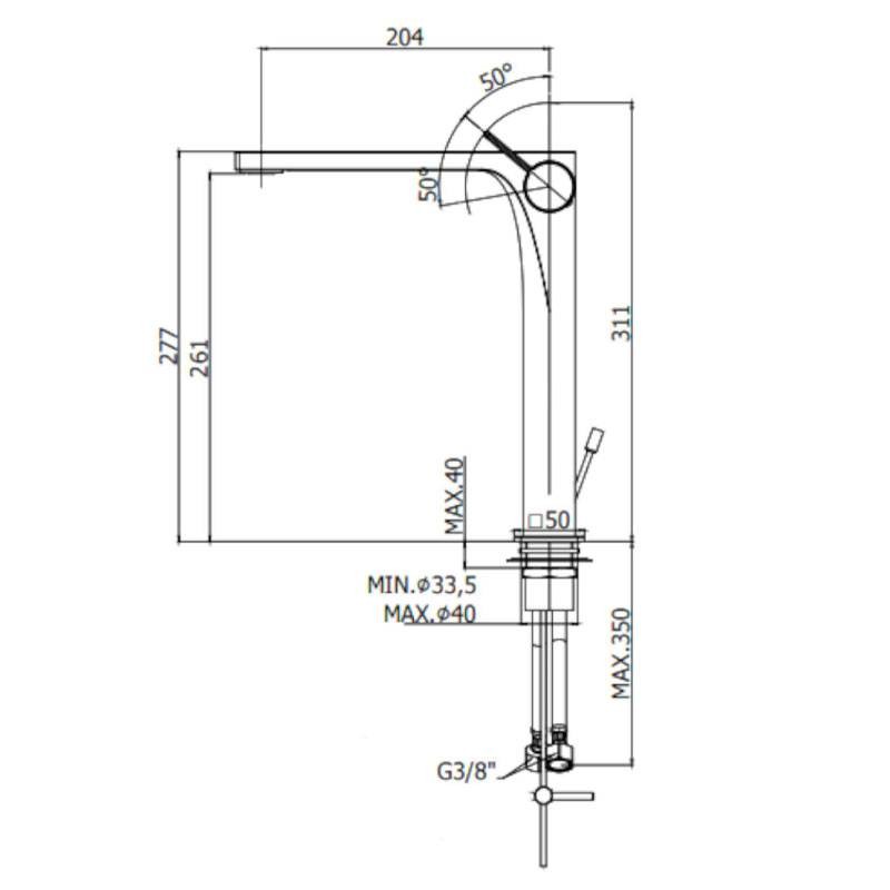 Mitigeur de lavabo prolongé sans vidange Paffoni Rock chromé avec les caractéristiques suivantes :
