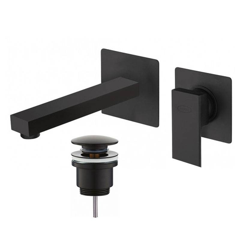 Mitigeur encastré pour lavabo Teorema Pillar, 2 pièces avec évacuation, couleur noir mat.