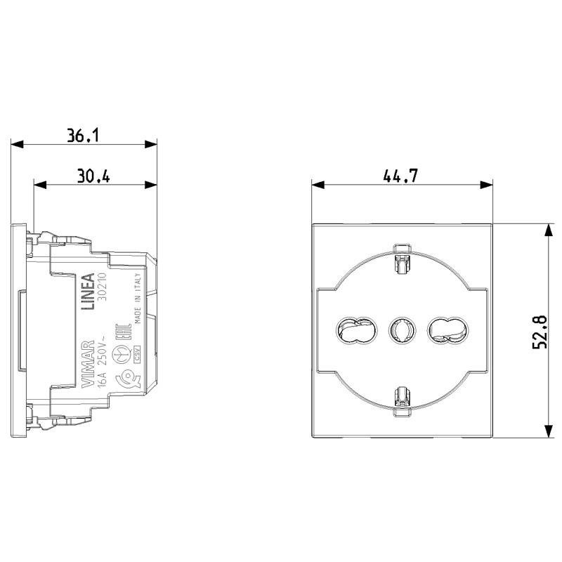 A monter uniquement sur les supports de la série Vimar Linea codes : 30613/30614/30617.