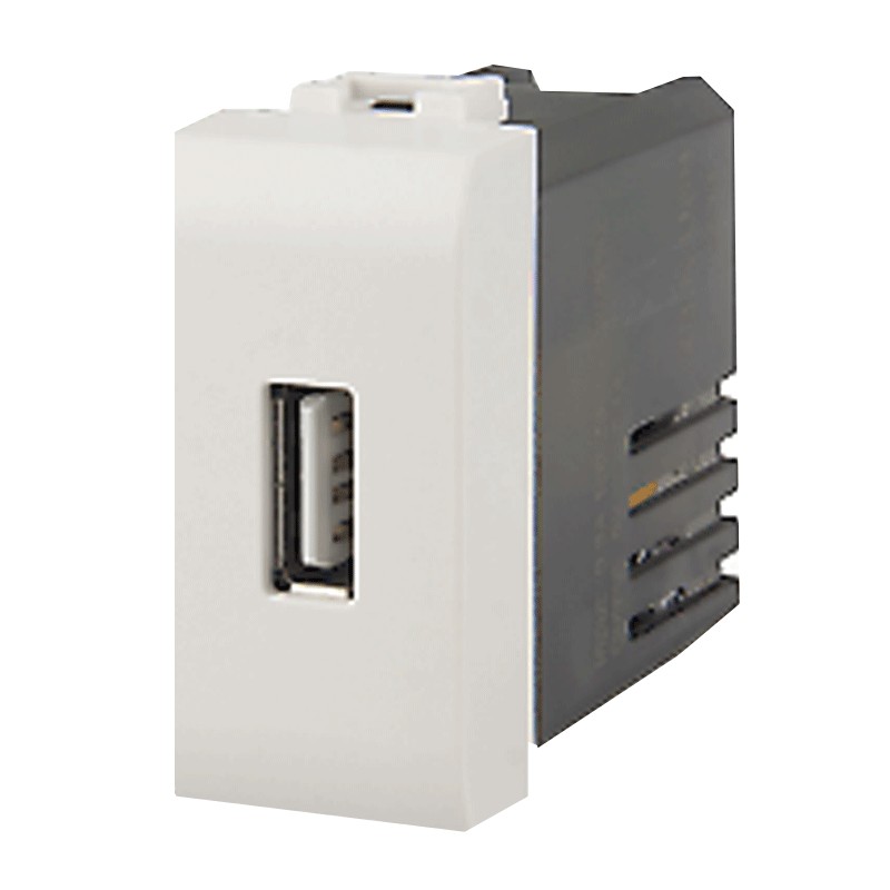 Chargeur USB 2.1A pour smartphones et tablettes, 1 module de couleur blanche. Le chargeur de batterie se monte uniquement sur les supports Bticino LivingLight. Déjà alimenté, il vous suffit de le brancher sur le secteur à la maison.
