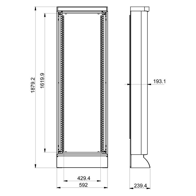 - Dimensions et poids : hauteur 1880 mm avec socle - largeur 595 mm - profondeur 205 mm - poids : 27,3 kg