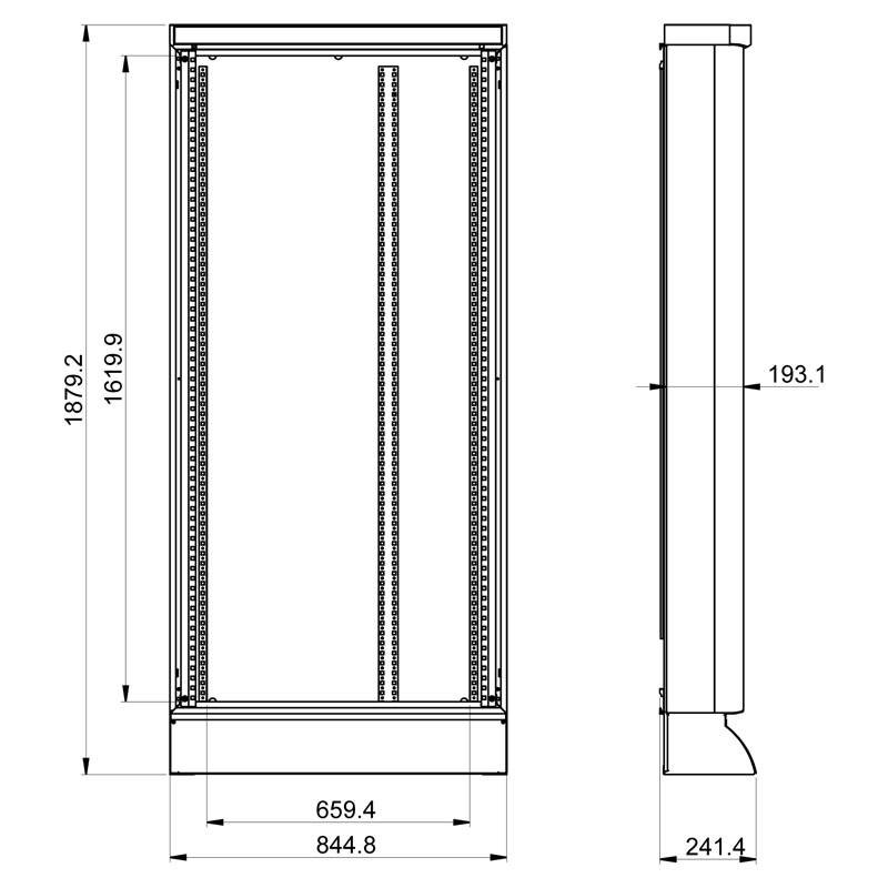 - Dimensions : hauteur 1880 mm avec socle - largeur 850 mm - profondeur 205 mm
