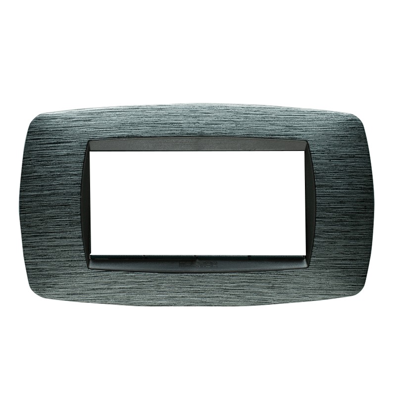 Plaque Master Modo 4 modules (fruits, places) couleur gris satiné. La plaque se monte sur les supports 38004, 38004-F, ou par l'intermédiaire de l'adaptateur 39034 la plaque est compatible avec les supports LN4704 et L4704 des séries Bticino Living et LivingLight.