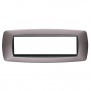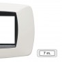 Plaque Master Modo 7 modules (fruits, places) couleur noyer foncé. La plaque se monte sur les supports 38007, 38007-F, ou par l'intermédiaire de l'adaptateur 39037 la plaque est compatible avec les supports LN4707 et L4707 des séries Bticino Living et LivingLight.
