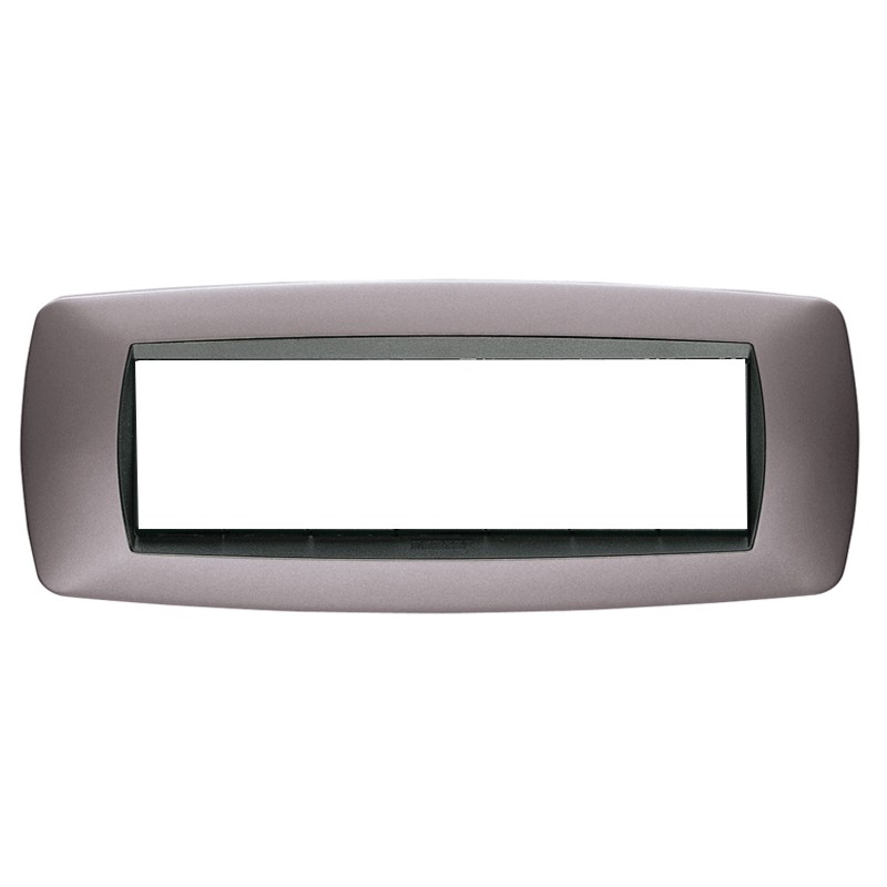 Plaque Master Modo 7 modules (fruits, lieux) couleur bronze mat. La plaque se monte sur les supports 38007, 38007-F, ou par l'intermédiaire de l'adaptateur 39037 la plaque est compatible avec les supports LN4707 et L4707 des séries Bticino Living et LivingLight.