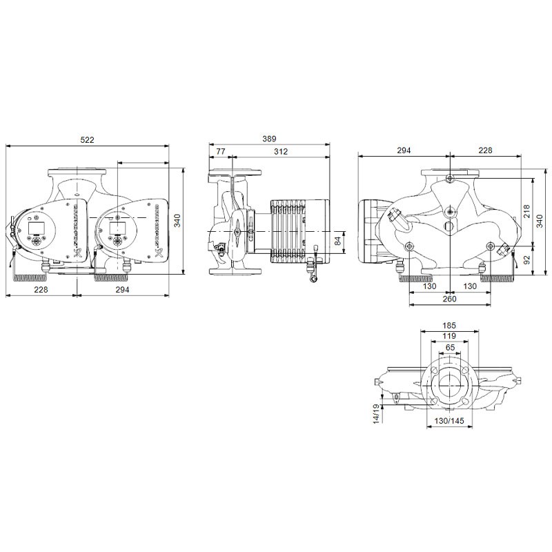 Circulateur à double rotor humide Grundfos MAGNA3 D 65-80 F avec raccord de tuyau DN 65, pression de service PN 6/10, entraxe 340 mm. Convient pour :
