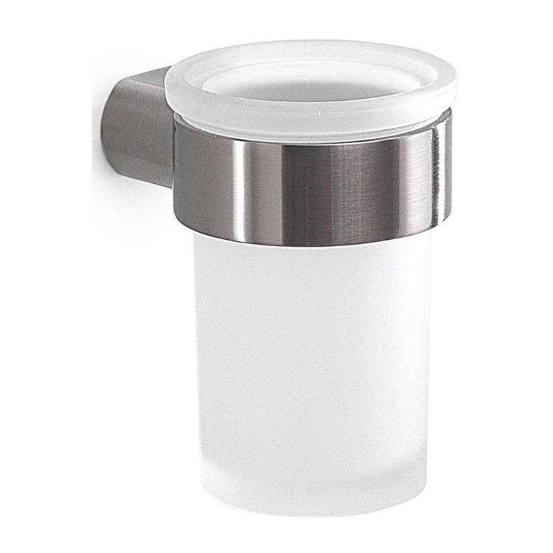 Porte-brosse à dents mural Gedy Pirenei en acier inoxydable et cromall, avec récipient en verre dépoli, couleur brossée, dimensions 6,9x9,2x10,4cm.