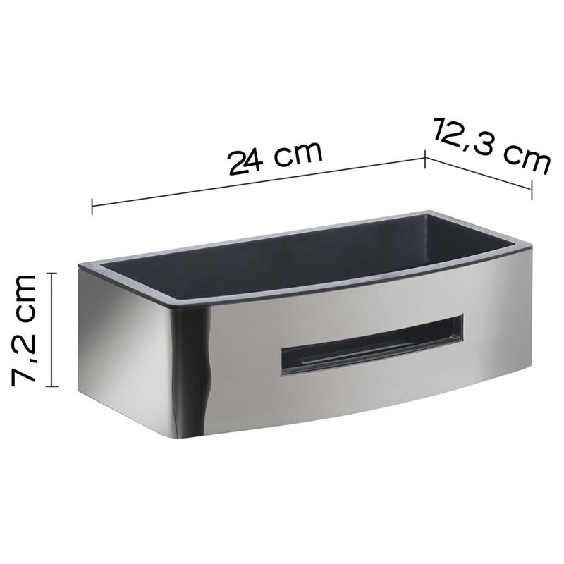 Porte-savon de douche Gedy Poseidon en acier inoxydable AISI 304 et ABS, modèle chrome poli, dimensions : Largeur 24 cm - Hauteur 7,2 cm - Profondeur 12,3 cm.