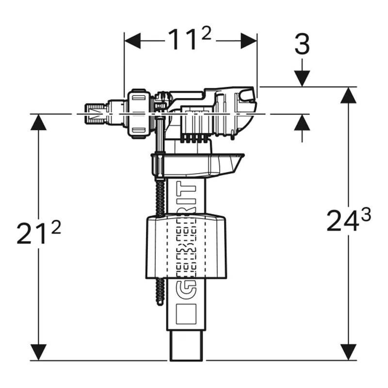 Vanne à flotteur de remplacement Geberit Type 380 pour les évacuations de WC, raccord d'eau latéral, 3/8", avec tige en laiton.