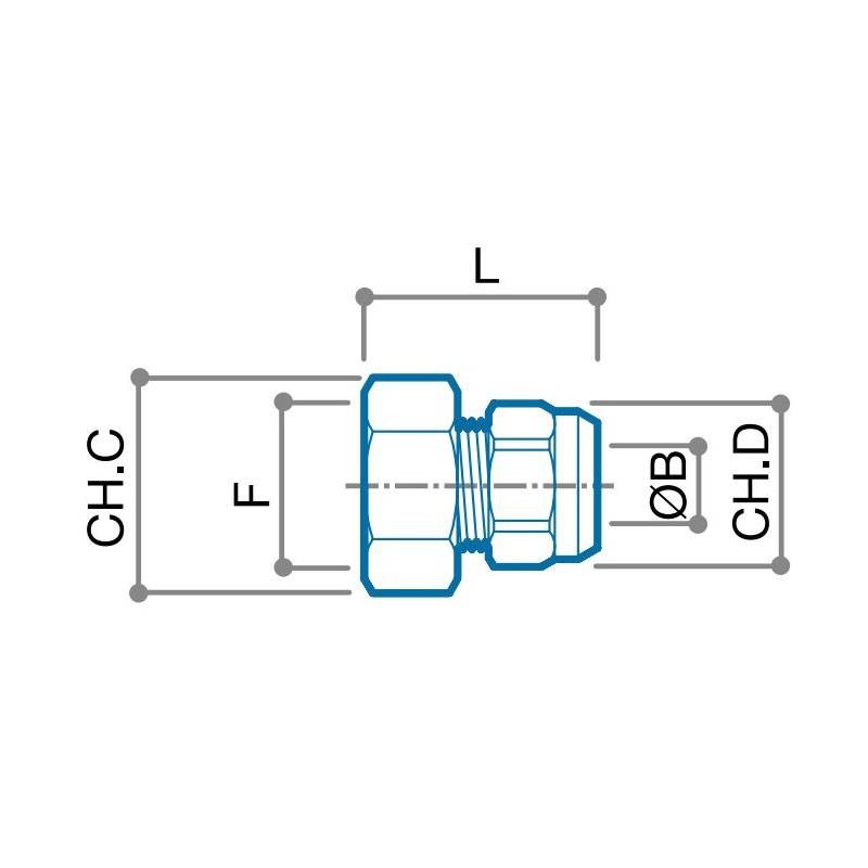 Raccord Luxor Cartouche en trois parties pour le raccordement des tuyaux sous le bassin, avec les caractéristiques suivantes :