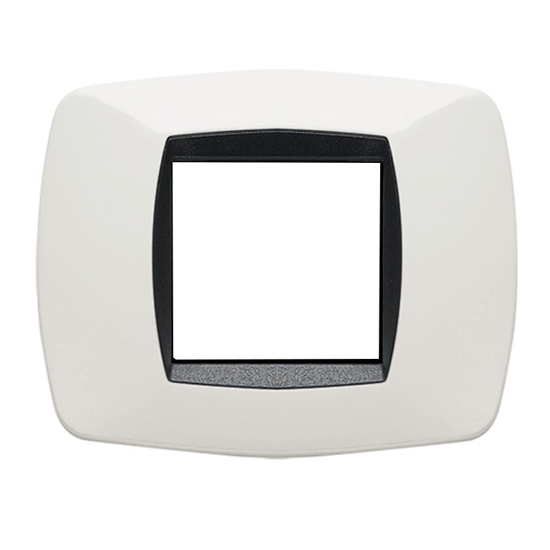 Plaque Master Modo 2 modules (fruits, lieux) blanc. La plaque se monte uniquement sur le support 38020-I. Fabriquée en polymère, elle est capable de résister à des températures élevées et au vieillissement.
