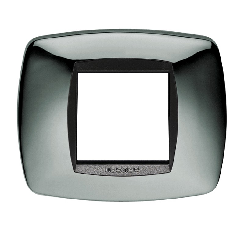 Plaque Master Modo 2 modules (fruits, lieux) chrome. La plaque se monte uniquement sur le support 38020-I. Fabriqué en polymère.