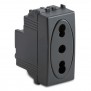 Prise électrique bidirectionnelle 2P+T 10/16A 250V Master Modo, 1 module, couleur gris. Il permet l'insertion de fiches de 10A (petites fiches) et de fiches de 16A (grandes fiches).