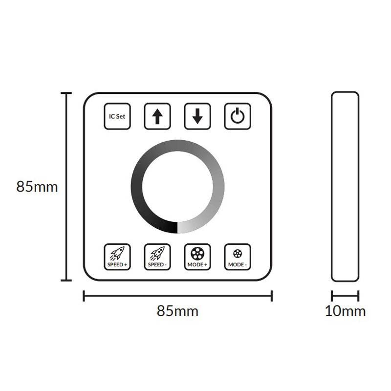 Contrôleur Gradateur mural pour bande LED Runner Ledco avec écran tactile présentant les caractéristiques suivantes