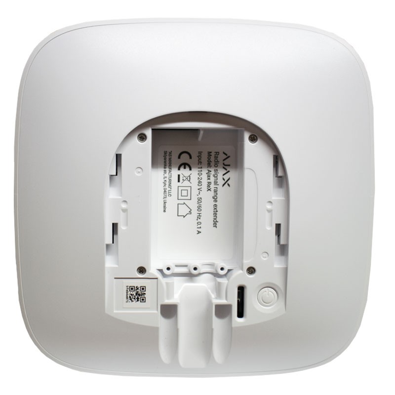 Répéteur de Signal radio AJAX REX, de couleur blanche, amplifie le débit de tous les dispositifs de sécurité du système d'Ajax et s'occupe de la communication avec le hub. Le répéteur de signal intelligent radio permet aux utilisateurs de placer les appareils Ajax à une distance considérable de la plaque tournante, pour la protection de bureaux sur plusieurs étages, des bâtiments distincts et même des usines de fabrication. En connectant un 5-ReX système de sécurité s'étend la couverture jusqu'à 35 km2.