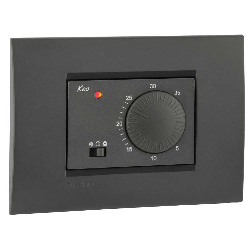 Thermostat d’ambiance Vemer pour régler la température des chaudières et des climatiseurs. Alimentation par batterie. Compatible avec Bticino, Vimar, Gewiis et Ave, uniquement série avec interrupteurs de couleur blanc et anthracite.