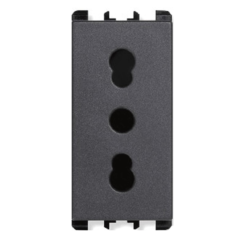 Prise italienne à deux voies Urmet Simon Nea 2P+T 10/16A 250V, bornes à vis, standard P11 et P17, 1 module, couleur gris anthracite. À appliquer sur les supports 10702N.G,10703N,10704N,10706N,10707.