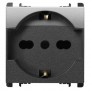 Prise universelle Schuko européenne, bornes à vis, compatible avec les prises standard allemandes 2P+T 16A-250V, les prises standard italiennes P11 et P17, les prises Euro 2P 2.5A, 2 modules, couleur acier foncé. À appliquer sur les supports 10702N.G,10703N,10704N,10706N,10707.