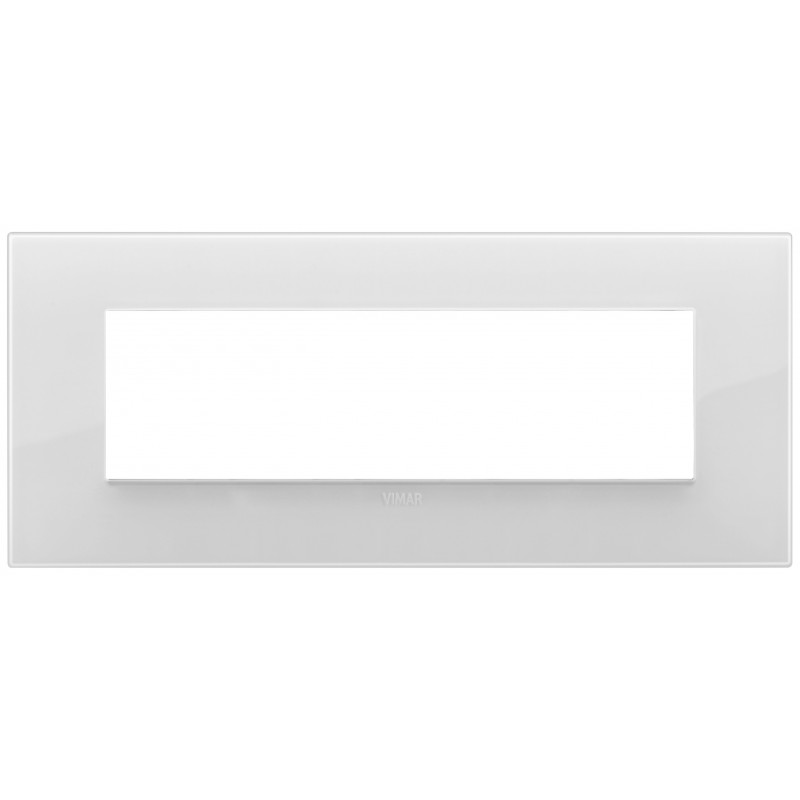 Plaque Vimar Arkè Classic 7 modules (inserts, lieux) couleur réflexe glace. La plaque est montée uniquement sur le support 19617. La plaque n'est pas installée sur les autres séries Vimar mais uniquement sur la série Arkè.