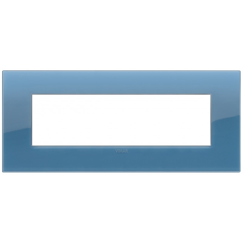 Plaque Vimar Arkè Classic 7 modules (inserts, lieux) couleur reflex ultramarine. La plaque est montée uniquement sur le support 19617. La plaque n'est pas installée sur les autres séries Vimar mais uniquement sur la série Arkè.