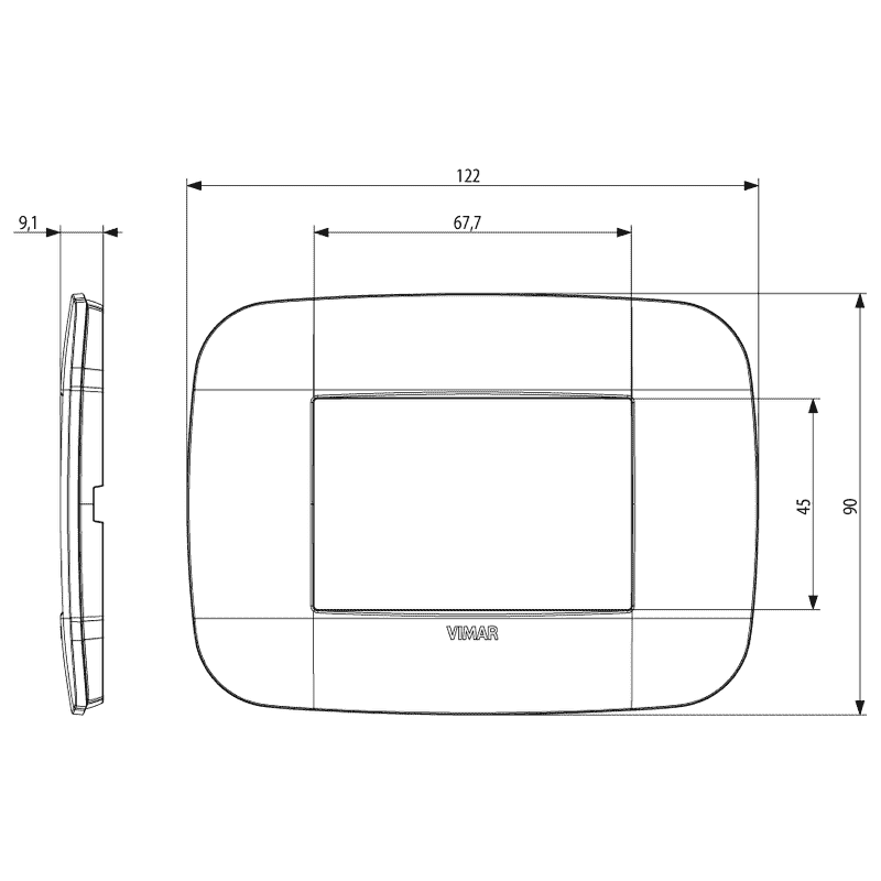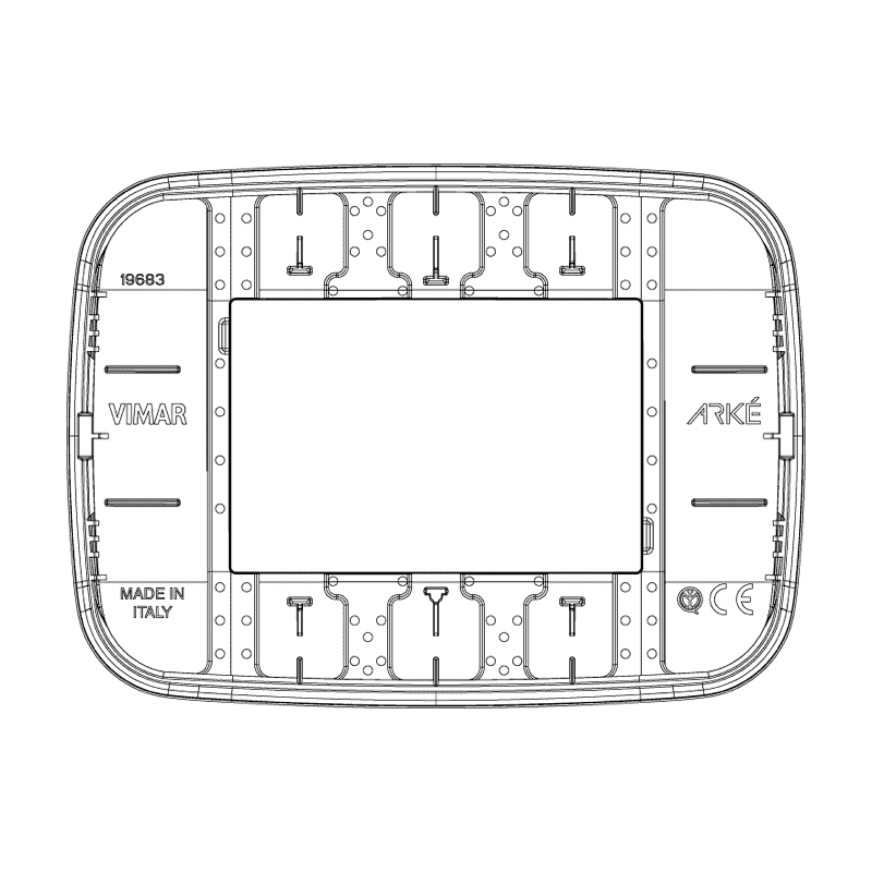 Plaque Vimar Arkè Round 3 modules (fruits, places) reflex glace. La plaque se monte uniquement sur le support 19613. La plaque n'est pas installée sur les autres séries Vimar mais uniquement sur la série Arkè.