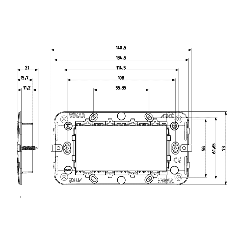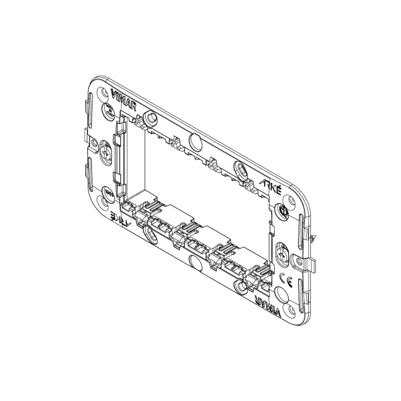 Support 4 modules avec vis, pour les boîtes 4 modules (fruits). Ce support permet d'accrocher uniquement les plaques Vimar Arkè.
